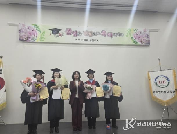 코리아타임뉴스 사회팀 | 파주교육지원청은 2월 5일, 금촌1동 행복복지센터 대강당에서 열린 학력인정 문해교육 중학 3단계 과정 졸업식에 참석했다.