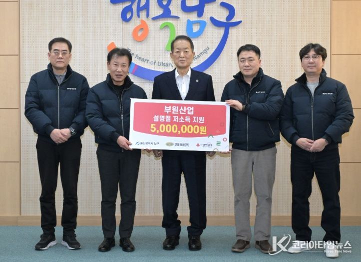 코리아타임뉴스 울산취재본부 | 울산 남구의 자동차 부품 전문 기업인 부원산업(대표 봉명식)은 5일 남구청을 방문해 관내 저소득 한부모 가정을 위한 성금 500만 원을 전달했다.