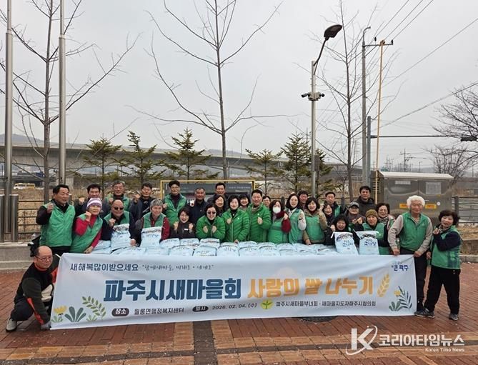 코리아타임뉴스 윤광희 기자 | 파주시새마을회는 다가오는 설 명절을 앞두고 지난 4일 월롱면 행정복지센터에서 ‘사랑의 쌀 나누기’행사를 개최하며 지역 내 이웃들에게 온정을 전했다.
