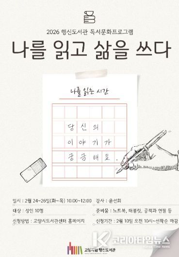 코리아타임뉴스 문화팀 | 고양특례시 행신도서관은 일반 성인을 대상으로 하는 글쓰기 프로그램 ‘나를 읽고 삶을 쓰다’를 운영한다.