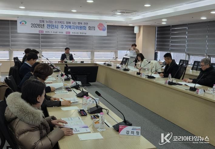 코리아타임뉴스 김택호 기자 | 천안시는 6일 시청 중회의실에서 ‘2026년 주거복지위원회’를 열고 실효성 있는 주거안정 정책 추진 방향을 논의했다.