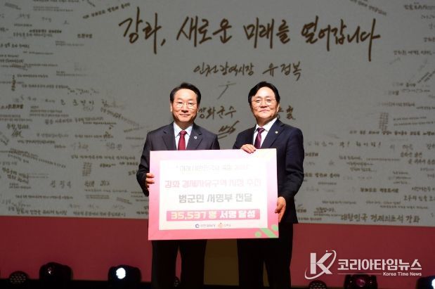 이어 열린 ‘생생톡톡 애인(愛人) 소통’ 행사에서도 경제자유구역 지정을 염원하는 군민들의 서명이 담긴 서명부를 유정복 시장에게 전달하며, 강화의 변화와 도약을 바라는 군민들의 뜻을 직접 전했다.