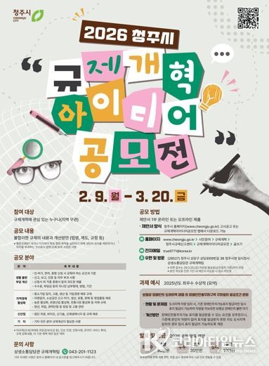 코리아타임뉴스 충북취재본부 | 청주시는 시민이 체감할 수 있는 다양하고 창의적인 규제개혁 아이디어를 발굴해 일상생활과 경제활동을 제약하는 규제를 적극 개선하고자 ‘2026 청주시 규제개혁 아이디어 공모전’을 개최한다고 8일 밝혔다.