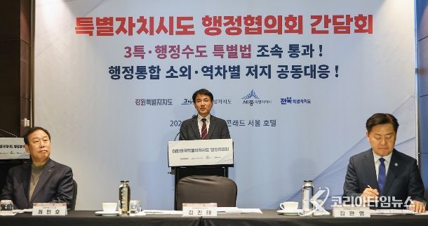 코리아타임뉴스 김택호 기자 | 대한민국특별자치시도 행정협의회(대표회장 강원특별자치도지사 김진태) 시‧도지사는 2026년 2월 8일 서울 콘래드 호텔에서 긴급 회동, 간담회를 개최했다.