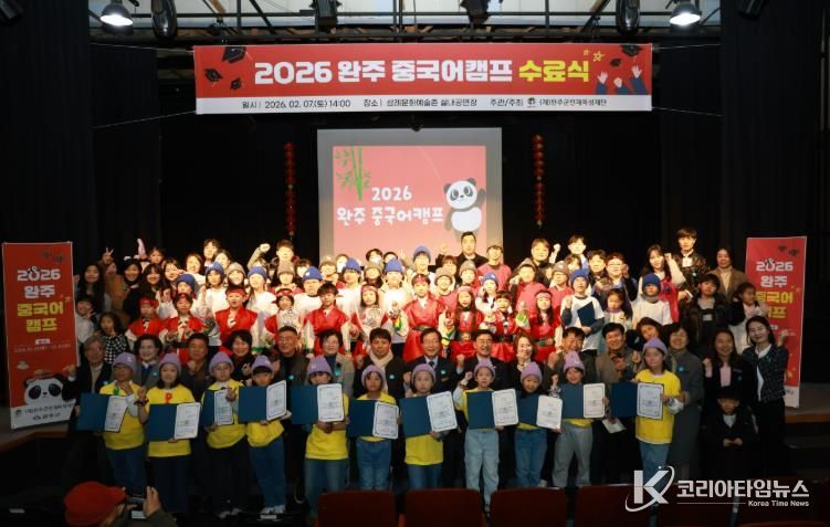 이번 수료식은 초등학교 2학년부터 중학교 1학년까지 학생 43명이 참여한 중국어캠프의 교육 성과를 공유하는 자리로, 유희태 완주군수와 유의식 군의회 의장, 재단 이사, 학부모 등 100여 명이 참석해 학생들의 성장을 함께 축하했다.