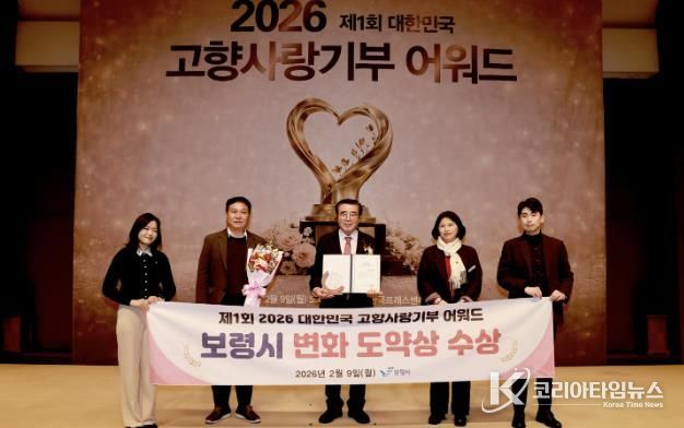 코리아타임뉴스 충남취재본부 | 보령시는 ‘제1회 2026 대한민국 고향사랑기부 어워드’에서 시 부문 변화도약상을 수상했다고 밝혔다.