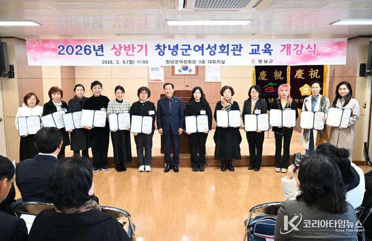 코리아타임뉴스 경남취재본부 | 창녕군은 9일, 창녕군여성회관 대회의실에서 군민의 자아실현과 취업능력 향상을 위한『2026년 상반기 창녕군여성회관 교육 개강식』을 개최했다.