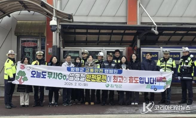 코리아타임뉴스 노승선 기자 | 전남 함평군은 “설 명절을 맞아 함평공영터미널 일원에서 교통사고 예방과 안전한 교통문화 정착을 위한 ‘오늘도 무사go’ 캠페인을 실시했다”고 10일 밝혔다.