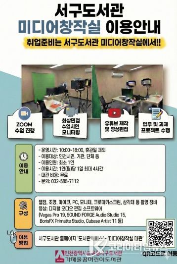 코리아타임뉴스 사회팀 | 인천광역시교육청서구도서관은 지역 주민의 미디어 창작활동을 지원하기 위해 ‘미디어 창작실’을 운영한다고 10일 밝혔다.