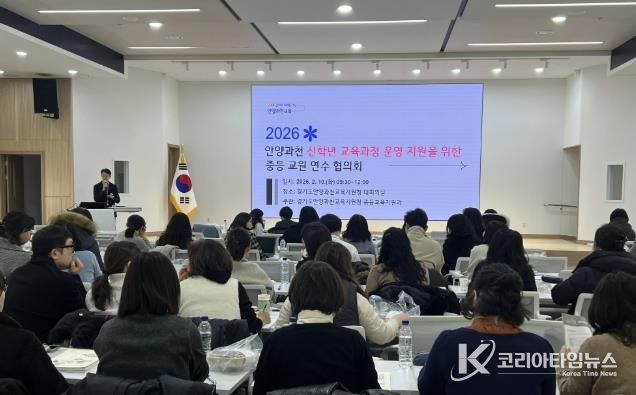 코리아타임뉴스 사회팀 | 경기도안양과천교육지원청은 2월 10일 전일에 걸쳐 안양과천교육지원청 대회의실에서 『2026학년도 중등 신학년 교육과정 운영 지원을 위한 업무담당 교원 연수』를 개최했다. 이날 협의회에는 관내 중, 고 관리자 및 업무담당 교원 200여 명이 참석했으며 ‘신학년 2022 개정교육과정 및 학교교육과정 운영 내실화’지원을 위해 마련됐다.