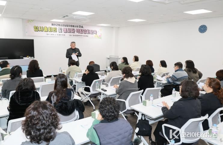 코리아타임뉴스 경북취재본부 | 예천군은 10일 예천군청소년상담복지센터 교육실에서 예천군청소년상담자원봉사회 주관으로 임시총회 및 봉사자 교육을 개최했다고 밝혔다.