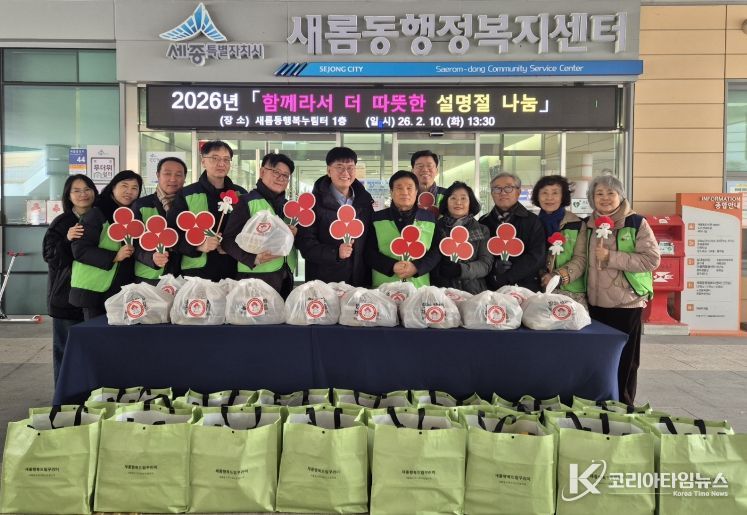 코리아타임뉴스 세종취재분부 | 세종특별자치시 새롬동지역사회보장협의체(공동위원장 강신우·김지원)가 10일 설 명절을 맞아 저소득 취약계층 및 홀몸어르신 15가구에 명절 음식과 물품 꾸러미 전달했다.