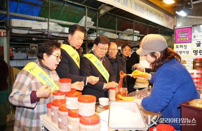 코리아타임뉴스 김태훈 기자 | 전북특별자치도의회는 설 명절을 앞둔 10일 군산 주공시장을 방문해 전통시장 상인들을 응원하며, 시장 활성화를 위한 장보기 행사와 이용 캠페인을 진행했다.