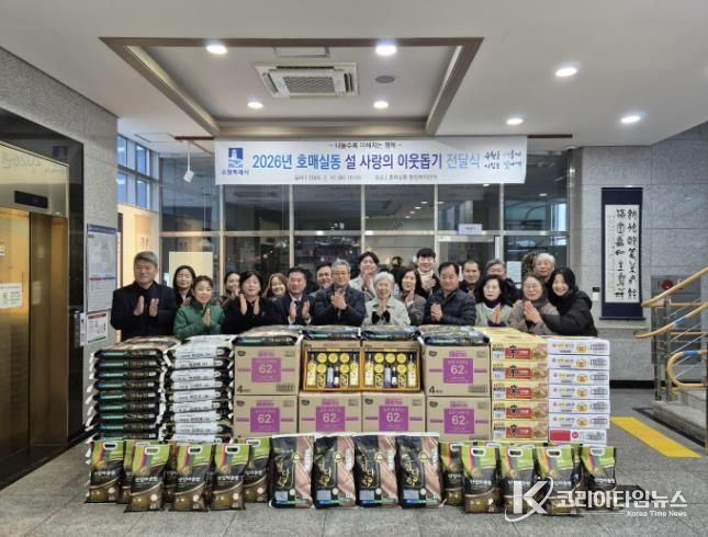 코리아타임뉴스 사회팀 | 수원시 권선구 호매실동에서 2026년 설 명절을 맞이하여 이웃 돕기 전달식을 진행했다.