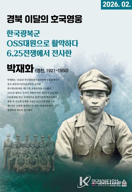 코리아타임뉴스 노승선 기자 | 경상북도호국보훈재단은 2026년 ‘경북 이달의 호국영웅’ 2월의 주인공으로 영천 출신 박재화 선생(朴載華, 1921~1950)을 선정했다고 밝혔다.