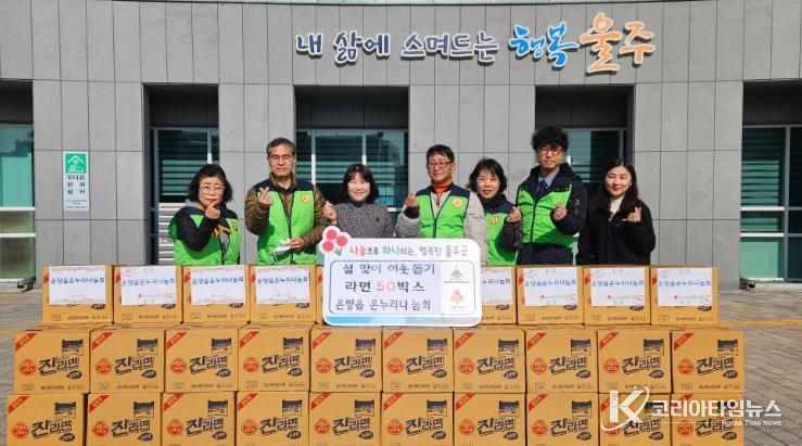 코리아타임뉴스 울산취재본부 | 온누리나눔회가 11일 설 명절을 맞아 울주군 온양읍 행정복지센터에 라면 50박스를 기탁했다.