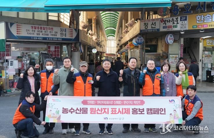 코리아타임뉴스 부산취재본부 | 부산 남구는 지난 2월 4일부터 6일까지 설 명절을 앞두고 '전통시장 농·수산물 원산지표시 및 축산물 위생·이력제 홍보 캠페인'을 실시했다고 밝혔다.