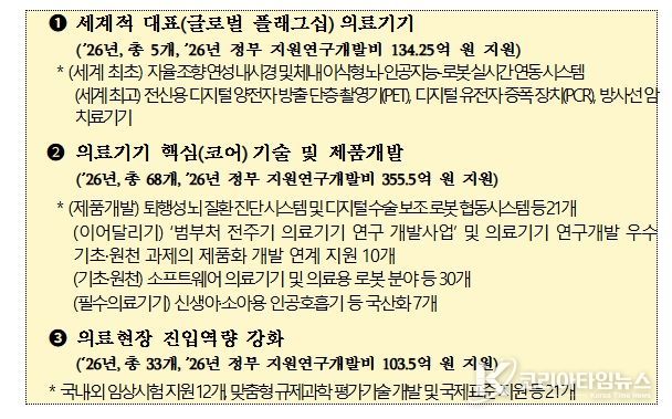 또한, 정부는 관계부처 합동으로 의료기기 분야 산·학·연·병 연구자 대상의 ‘2026년도 범부처 첨단 의료기기 연구 개발사업 신규 지원 재상 과제 사업설명회’를 2월 13일 10시부터 13시까지 엘타워 그레이스 Ⅰ홀 (서울 서초구)에서 개최한다.