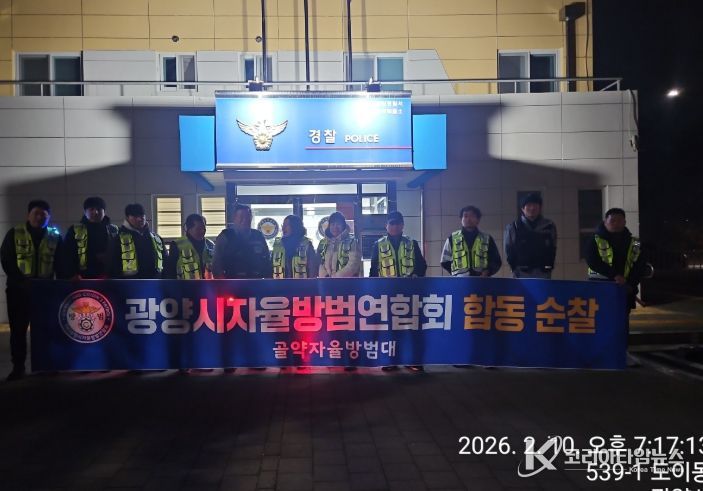 코리아타임뉴스 전남취재본부 | 광양시 골약동사무소는 지난 10일 설 명절을 앞두고 지역 내 범죄 예방과 주민 안전 강화를 위해 골약자율방범대(대장 김동근) 주관으로 야간 합동 방범활동을 실시했다고 밝혔다.