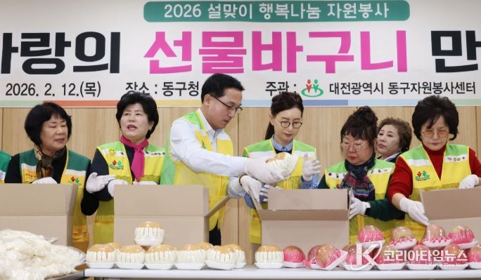 코리아타임뉴스 대전취재본부 | 대전 동구는 12일 동구청 후생관에서 동구자원봉사센터 주관으로 설 명절 맞이 ‘사랑의 선물바구니’ 제작 행사를 개최했다고 밝혔다.