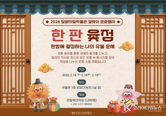 코리아타임뉴스 오영주 기자 | 경남 밀양시립박물관은 2026년 설 명절을 맞아 시민과 관람객들이 전통문화를 즐기며 화합할 수 있는 ‘설맞이 특별 체험 프로그램’을 운영한다.