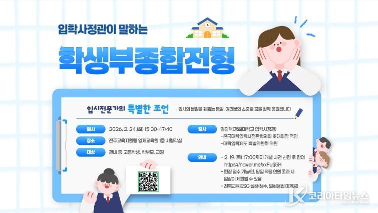 코리아타임뉴스 사회팀 | 전북특별자치도전주교육지원청이 관내 중·고등학생과 학부모, 교원을 대상으로 변화하는 대입에 대비한 진학 지원에 나섰다.