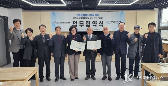 코리아타임뉴스 사회팀 | 경기도교육청학생교육원이 양평문화원과 지역 기반 상호 협력체계 구축을 위한 업무협약을 체결했다.