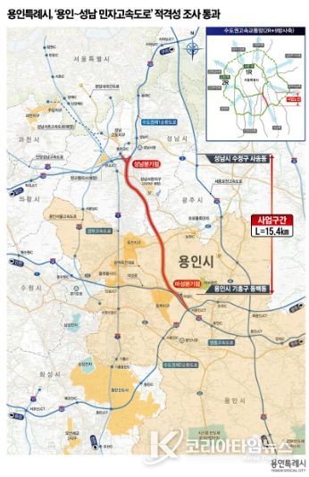 코리아타임뉴스 사회팀 | 용인특례시는 ‘용인~성남 고속도로 민간투자사업’이 한국개발연구원(KDI) 적격성 조사를 통과했다고 13일 밝혔다.