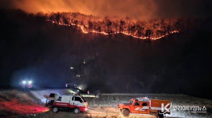 군은 이틀간 공무원 554명, 산불진화대 219명, 소방공무원 336명, 경찰 70명, 의용소방대 130명 등 총 1,412명의 인력과 헬기 21대, 산불지휘차 등 장비 128대를 투입해 진화에 총력을 기울였다. 그 결과 22일 오후 5시 30분경 잔불 진화를 완료했으며, 현재는 24시간 뒷불 감시체계로 전환해 재발 방지에 만전을 기하고 있다.