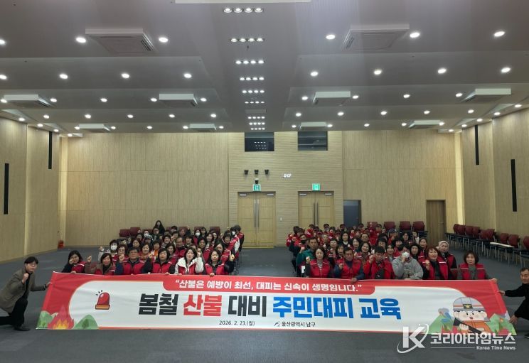 코리아타임뉴스 김태훈 기자 | 울산 남구는 23일 명예산불감시원, 산불진화대원 등 150여 명을 대상으로 남구청 6층 대강당에서 산불 예방 및 주민대피 교육을 실시했다.