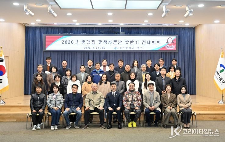 코리아타임뉴스 울산취재본부 | 울산 중구가 2월 23일 오후 3시 중구청 대회의실에서 2026년 종갓집 정책자문단 상반기 전체회의를 개최했다.