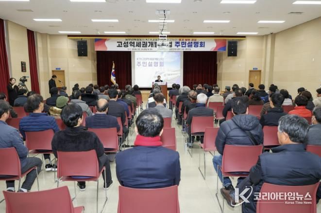 코리아타임뉴스 경남취재본부 | 고성군은 2월 24일 고성읍행정복지센터에서 지역 주민과 관계자 등이 참석한 가운데 KTX고성역세권개발사업 주민설명회를 개최했다.