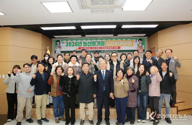 코리아타임뉴스 경남취재본부 | 의령군은 지난 25일 농업기술센터 농업인교육관에서 교육생 40여 명이 참석한 가운데 2026년도 농산물 가공 창업아카데미 개강식을 개최했다.