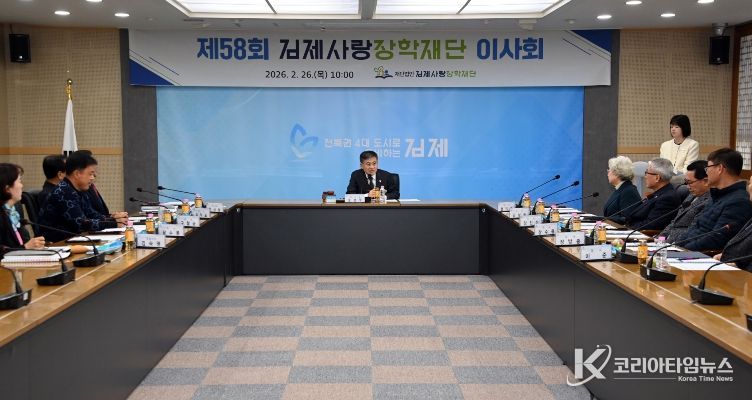 코리아타임뉴스 전북취재본부 | 김제시는 재단법인 김제사랑장학재단(이사장 정성주)이 26일 시청 2층 상황실에서 임원 12명이 참석한 가운데 제58회 정기이사회를 개최했다고 밝혔다.