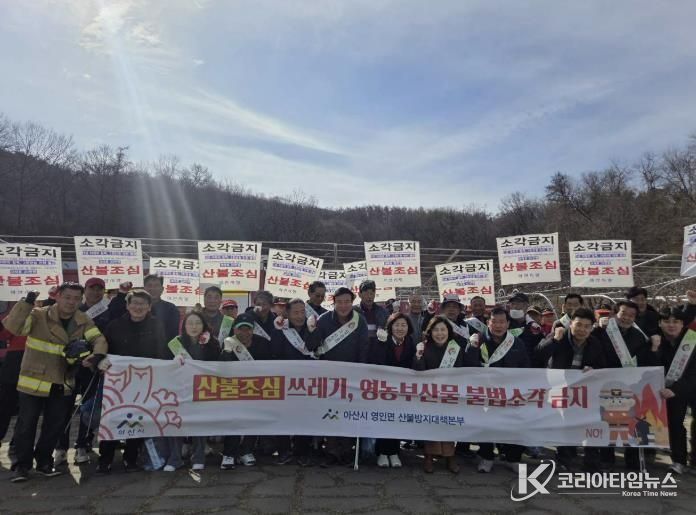 코리아타임뉴스 김택호 기자 | 아산시 영인면은 26일 건조하고 바람이 많이 부는 날씨에 대비해 봄철 산불예방 캠페인을 실시했다.