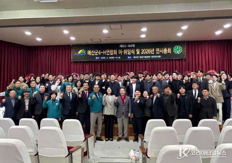 코리아타임뉴스 김택호 기자 | 예산군4-H연합회는 지난 26일 농업기술센터 교육관에서 회원 및 내빈 50여 명이 참석한 가운데 예산군4-H연합회장 이·취임식 및 연시총회를 개최했다고 밝혔다.