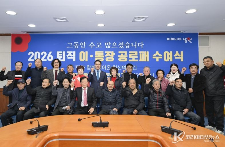 코리아타임뉴스 김태훈 기자 | 남원시는 지난 2월 27일 시청 회의실에서 행정과 시민의 가교 역할을 수행하며 지역 발전에 기여해 온 이·통장들에게 공로패를 수여했다.