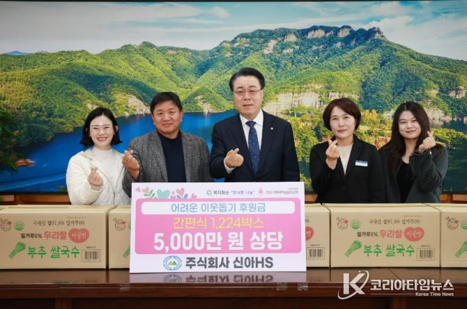 코리아타임뉴스 노승선 기자 | 화순군은 4일 ㈜신아에이치에스(회장 정현석)가 관내 취약계층을 위해 5천만 원 상당의 간편식을 기탁했다고 밝혔다.