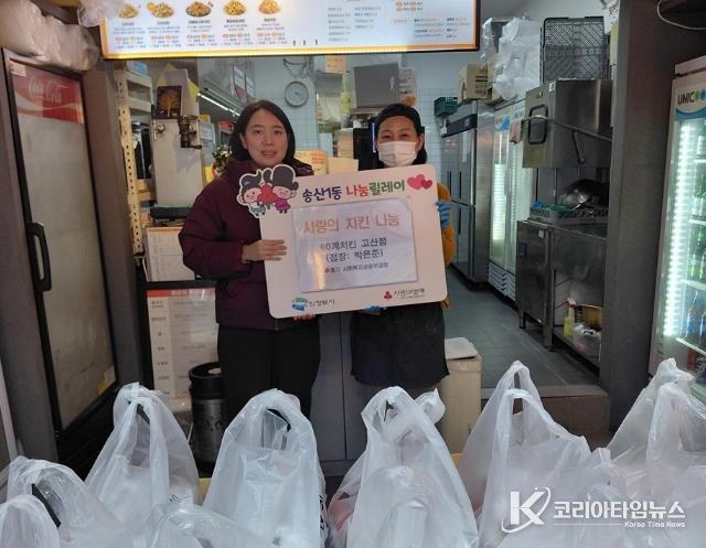 코리아타임뉴스 기동취재팀 | 의정부시 송산1동주민센터는 2월 27일 60계치킨 고산점이 관내 저소득 한부모가정을 위해 치킨 10마리를 후원하며 따뜻한 나눔을 실천했다고 밝혔다.