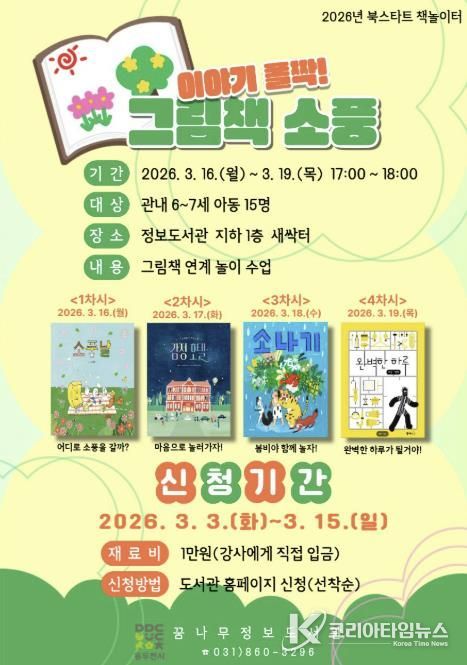 코리아타임뉴스 경기취재본부 | 동두천시 꿈나무정보도서관은 3월 16일부터 3월 19일까지 2026년 북스타트 책놀이터 ‘이야기 폴짝! 그림책 소풍’을 운영한다고 밝혔다.