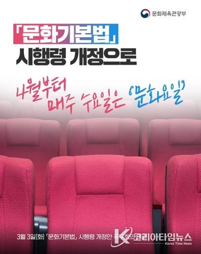 코리아타임뉴스 윤광희 기자 | 「문화기본법」 시행령 개정으로 4월부터 매주 수요일은 '문화요일'