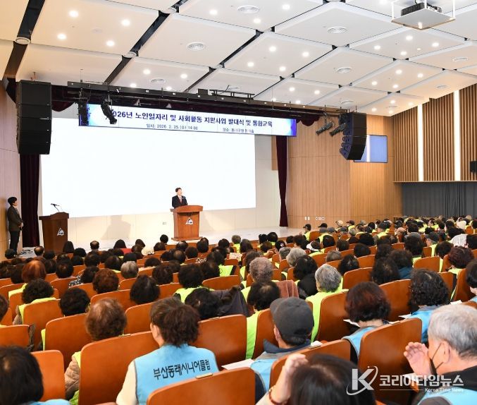 코리아타임뉴스 부산취재본부 | 부산 동래구는 지난 2월 25일 동래구청 동래홀에서 노인 일자리 사업 5개 수행기관의 참여 어르신 300여 명을 대상으로 2026년 노인 일자리·사회활동 지원사업 발대식 및 통합 교육을 개최했다고 밝혔다.