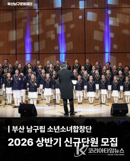 코리아타임뉴스 부산취재본부 | (재)부산남구문화재단은 남구립 소년소녀합창단의 신규 합창단원을 2026년 3월 3일부터 3월 17일까지 모집한다고 밝혔다.