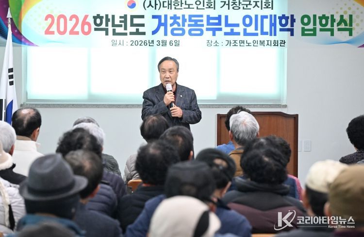 코리아타임뉴스 오영주 기자 | (사)대한노인회 거창군지회(지회장 강창남)는 6일, 지역 어르신들의 활기찬 노후와 평생학습 기회 확대를 위한 ‘2026학년도 노인대학 입학식’을 개최했다.