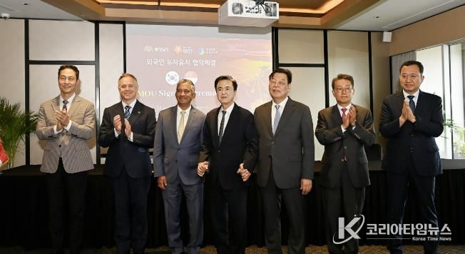 코리아타임뉴스 김택호 기자 | 태안군이 6일 싱가포르 스위소텔 더 스탬포드 호텔에서 뷔나그룹과 1조 원대 재생에너지(해상풍력) 투자협약을 맺고 친환경 에너지 산업 중심지로의 도약에 나섰다.
