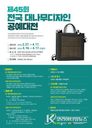 코리아타임뉴스 노승선 기자 | 대나무의 고장 담양군이 유구한 역사를 자랑하는 국내 유일의 대나무공예 공모전인 ‘제45회 전국대나무디자인공예대전’을 개최한다.
