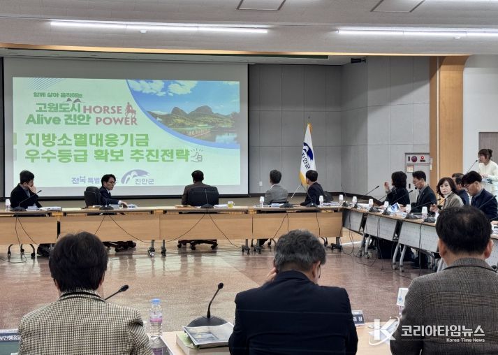 코리아타임뉴스 충북취재본부 | 진안군이 지방소멸대응기금의 체계적 운영과 집행률 제고를 위해 전 부서 협업체계를 강화하며 우수등급 확보에 총력을 기울이고 있다. 군은 3월 확대간부회의에서 2027년 지방소멸대응기금 투자계획 주요 전략과 우수등급 확보 추진방안을 보고하고, 인구활력 정책과 연계한 중장기 투자 방향을 공유했다.