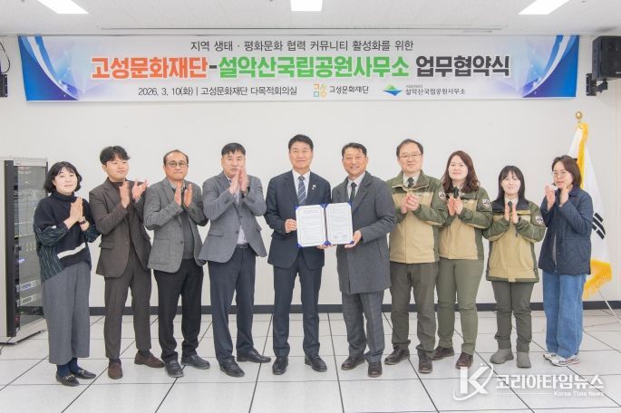 코리아타임뉴스 이아름 기자 | 평화 경제 거점 도시 강원 고성군 산하 고성문화재단과 설악산국립공원사무소(소장 노윤경)가 고성군의 생태·평화적 가치를 확산하고 지역사회 협력 커뮤니티를 활성화하기 위해 힘을 모으기로 했다.