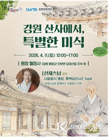 코리아타임뉴스 이아름 기자 | 강원관광재단은 4월 11일, 평창 월정사에서 개최되는 ‘강원 산사에서 특별한 미식’ 행사가 지난 3월 9일 모집 시작과 동시에 전석 매진됐다고 밝혔다.