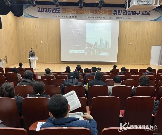 코리아타임뉴스 세종취재분부 | 세종특별자치시가 지난 10일 조치원 복합커뮤니티센터에서 대한전문건설협회 세종시·충남도회 회원사 및 관계자를 대상으로 건설법규 교육을 진행했다.
